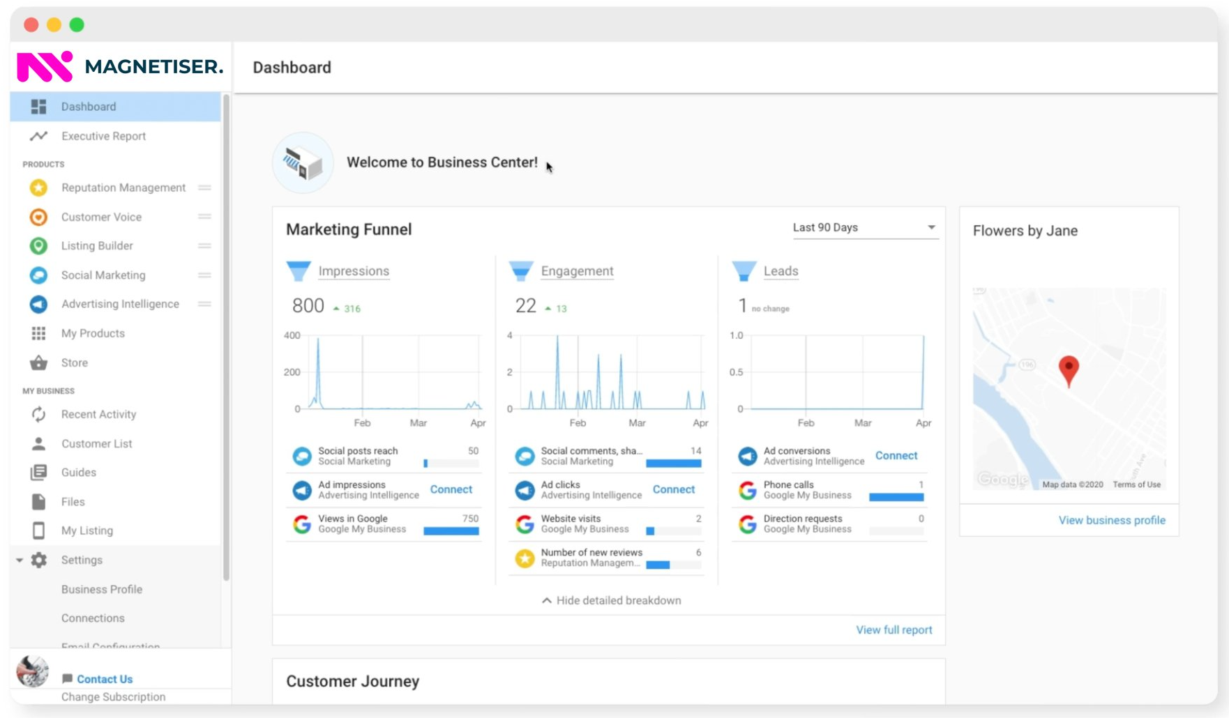 Take control of your online presence. Correct your business listings, monitor and manage reviews, observe what competitors are doing, and more.